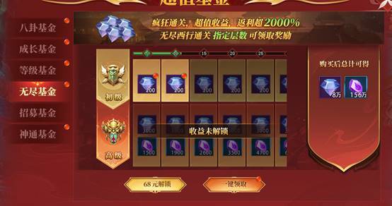 5. 能获得升阶石的活动比较少,开服第二天开启的等级基金和无尽基金可以获得大量升阶石,性价比非常高,不可错过